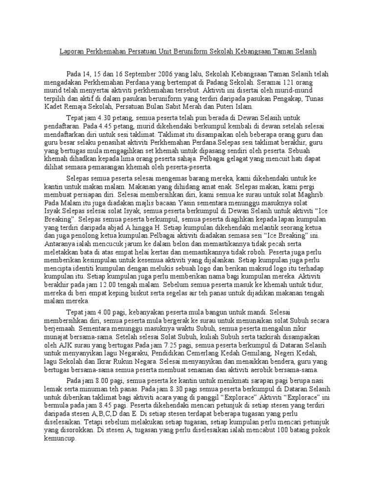 Laporan Perkhemahan Unit Beruniform Pdf