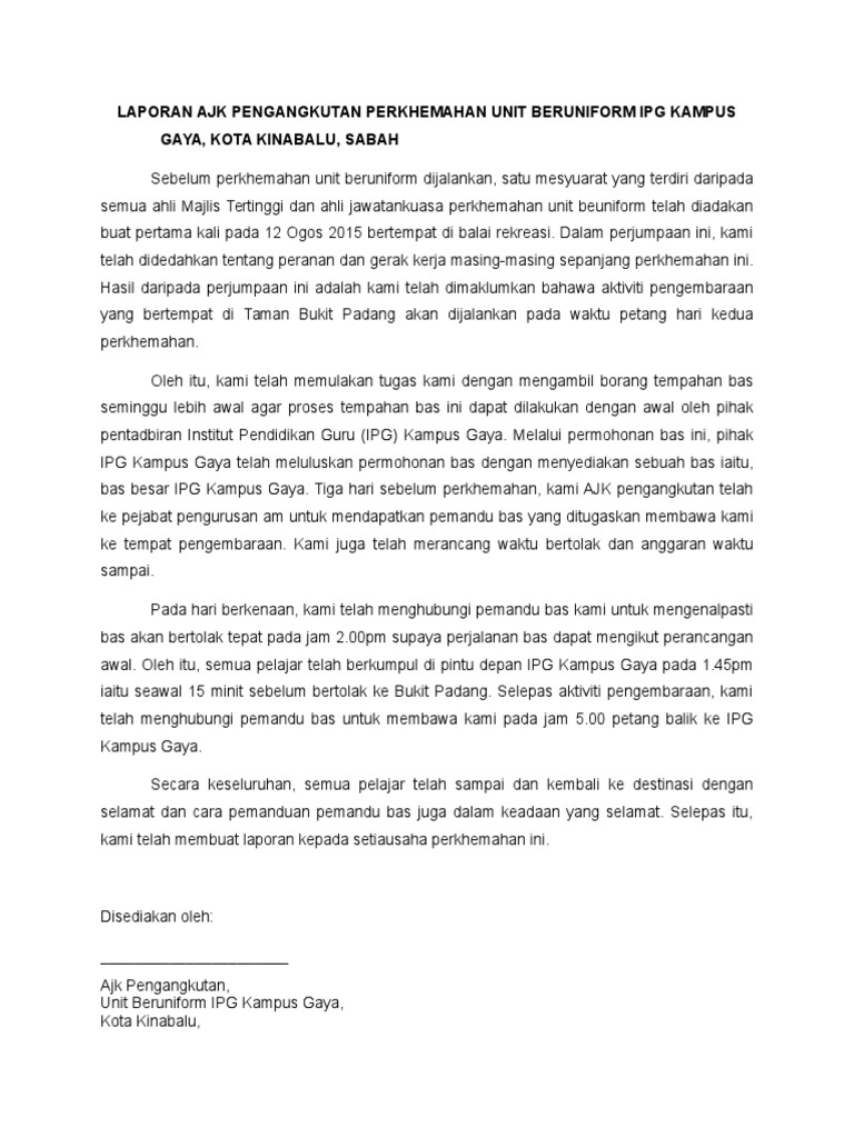 Laporan Ajk Pengangkutan Perkhemahan Unit Beruniform Ipg Kampus Gaya Pdf